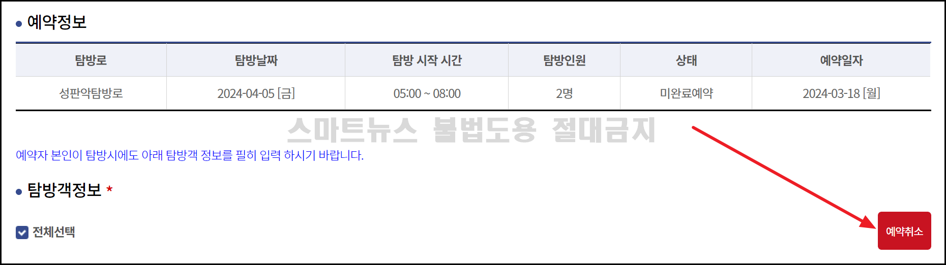 ※ 탐방 예약 시간 이전에는 언제나 취소가 가능합니다.